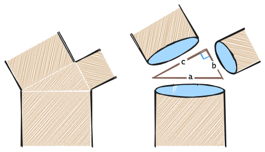 \[a^2=b^2 + c^2\]なので、直角に枝分かれすることになる。
